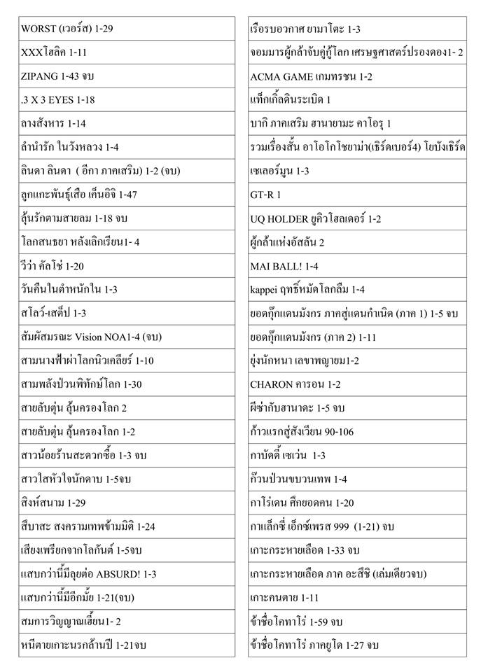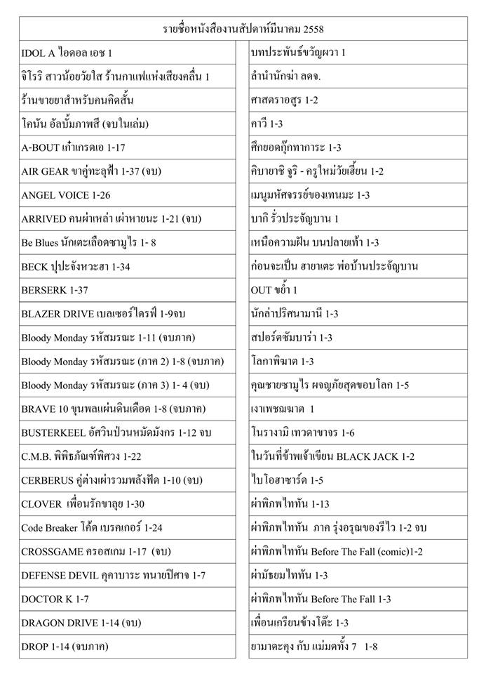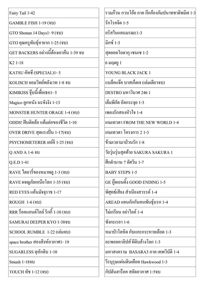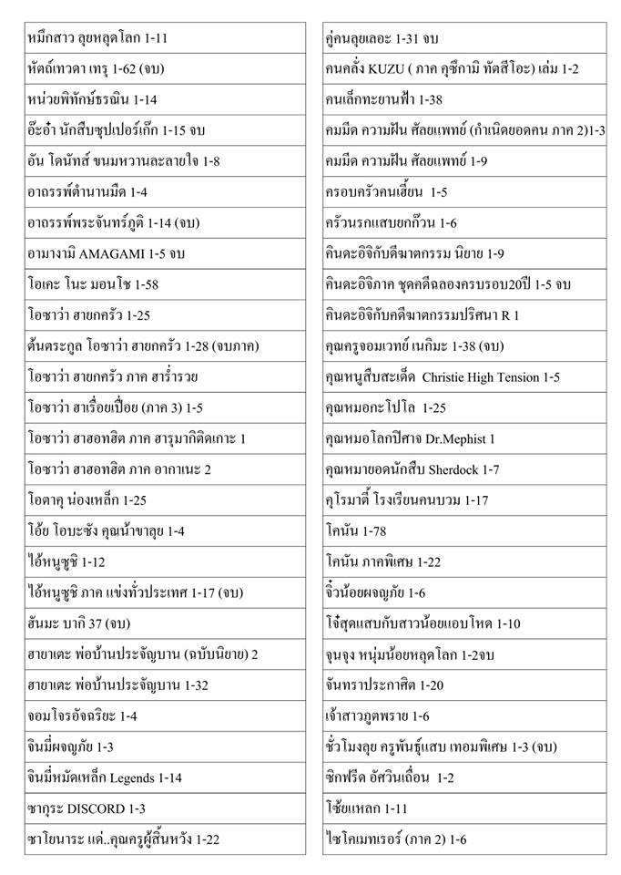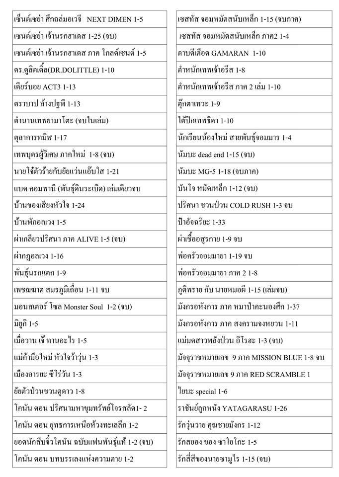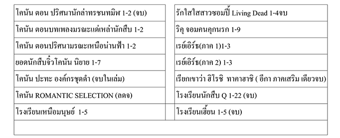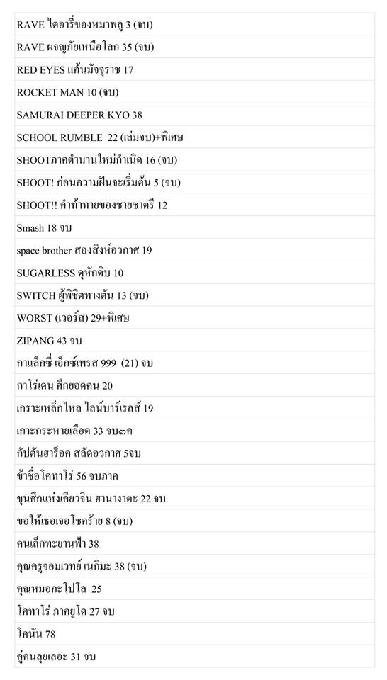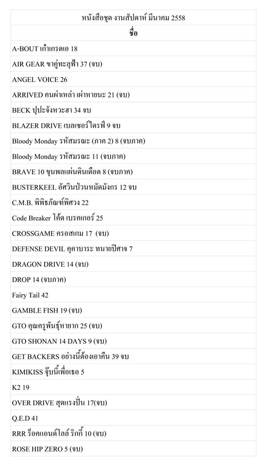 ประกาศลิขสิทธิ์พร้อมวางจำหน่ายในสัปดาห์หนังสือแห่งชาติครั้ง 43 ซึ่งทยอยประกาศออกมาเรื่อยๆ (ทางเฟสบุ๊ค) ซึ่งแอดมินรวบรวมมาได้ ทั้งหมด 16 เล่ม ได้แก่