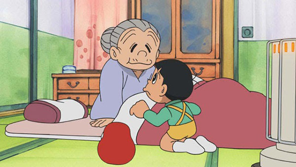 หนึ่งตอนที่ซึ้งกินใจ เมื่อโนบิตะ ได้เจอตุ๊กตาของคุณย่าโดยบังเอิญ ก่อนจะขอโดเรม่อนใช้ไทม์แมชชีนย้อนกลับไปหาคุณย่าเมื่อครั้งยังมีชีวิต จนเกิดเรื่องวุ่นวายต่างๆมากมาย แต่เมื่อได้เจอคุณย่าจนได้ยินความปรารถนาครั้งสุดท้ายจึงขอให้โดเรม่อนหยิบเป้แล้วบอกความจริงว่า เขาคือโนบิตะจากอนาคต ซึ่งย่าก็เข้าใจ จนโนบิตะได้กลับไปหาคนที่เขารักและมีพระคุณในที่สุด