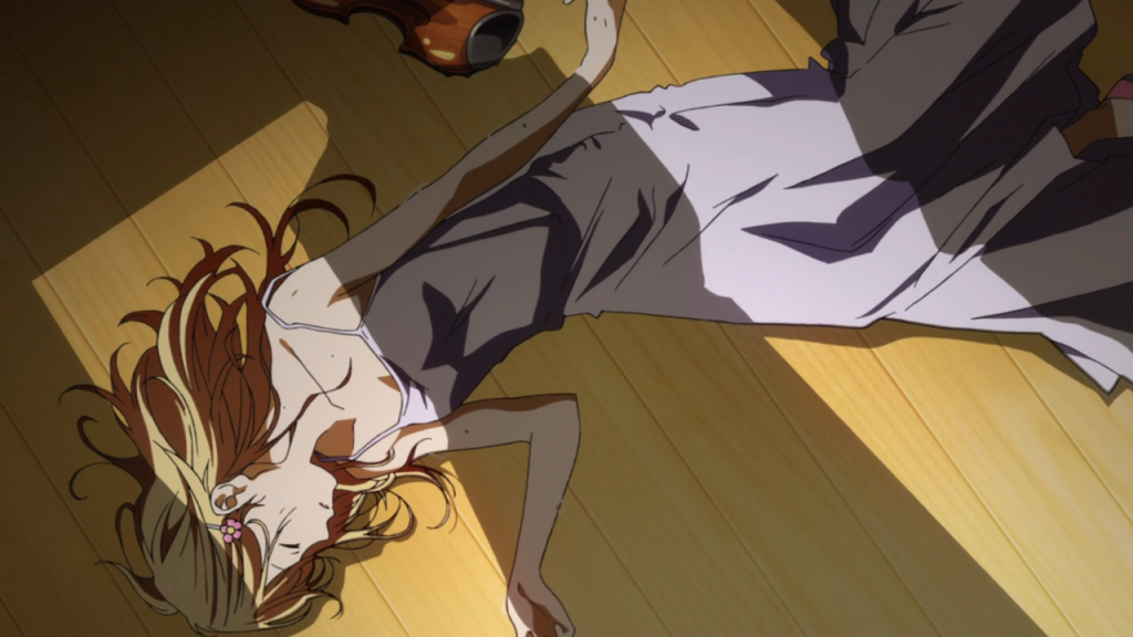 อาริมะ โคเซย์ อัจฉริยะนักเปียโนในอายุ 9 ขวบ แต่พอคุณแม่ที่เคี่ยวเข็ญให้เล่นเปียโนแต่เด็ก ได้จากไป เขาก็ไม่สามารถเล่นมันได้อีก แต่ก็มีแสงสว่างเข้ามาในชีวิต นั่นก็คือ คาโอริ เด็กสาวที่เล่นไวโอลิน แต่อาจารย์ที่แต่งเรื่องนี้ไม่เคยปราณีอาริมะคุงเลย เพราะคาโอริป่วยเป็นโรคบางอย่างจนเธอต้องเสียชีวิตไป พระเอกเสียแสงสว่างไปจากชีวิตอีกครั้ง คนดูก็เสียตับไปครึ่งนึงเช่นกัน สุดท้ายก็จากไปเหลือแต่ความทรงจำ