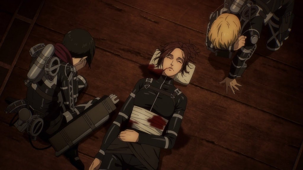 หน่วยสำรวจทุกคนกำลังจะหนีขึ้นเรือเหาะ เพื่อกลับพาราดีส์ แต่ กาบิ ลอบขึ้นเรือเหาะมา แล้วก็ยิงเข้าที่ท้องของซาช่า