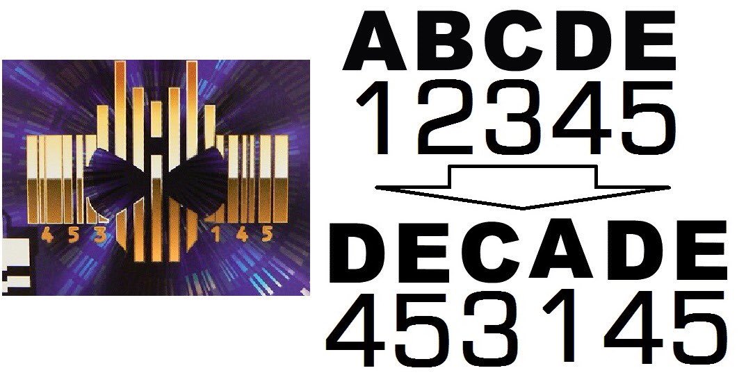 สัญลักษณ์ของดีเคด มีหมายเลข 453 และ 145 ใต้บาร์โค้ด เมื่อนำเลขชุดนี้มาเทียบกับลำดับตัวอักษรในภาษาอังกฤษ “453145″ จะกลายเป็นคำว่า “DECADE” นั่นเอง