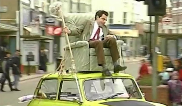 นี่คือหนึ่งในฉากน่าจดจำของ Mr. Beanในตอนที่สองของ Do it Yourself Mr. Bean เมื่อนายบีนของเราซื้อเก้าอี้นั่งเล่นตัวใหม่พร้อมข้าวของตกแต่งบ้านสำหรับวันปีใหม่ แต่ถ้าจะจ้างคนมาช่วยก็กระไรอยู่เขาจึงเกิดไอเดียบรรเจิดโดยการดัดแปลงแปรงถูพื้นกับไม้กวาดเป็นตัวบังคับรถโดยเขาจะบังคับจากเก้าอี้ที่อยู่บนหลังคา กลายเป็นภาพจำของซีรีส์จนทุกวันนี้