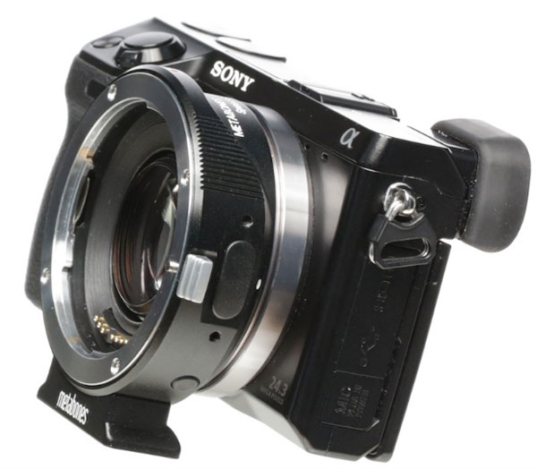 เป็นอะแดปเตอร์จากผู้ผลิตอิสระที่ได้รับความนิยมมากพอสมควร โดดเด่นด้วยการออกแบบให้สามารถใช้ระบบควบคุมต่าง ๆ ของกล้อง อาทิ ระบบออโต้โฟกัส ระบบป้องกันการสั่นไหวทีตัวเลนส์ และการปรับตั้งค่าต่าง ๆ ได้ทั้งหมด นอกจากนี้ คุณสมบัติพิเศษอีกอย่างหนึ่งคือ สามารถปรับแก้องศาการรับภาพของเลนส์ ให้ใกล้เคียงกับระยะเดิมออกแบบมาเฉพาะกับกล้อง Mirrorless ที่ใช้เซ็นเซอร์ขนาด APS-C โดยตัวอะแดปเตอร์จะมีชิ้นเลนส์สำหรับปรับองศาการรับภาพให้กว้างขึ้นประมาณ 0.71 เท่า และเพิ่มความสว่างให้กับเลนส์ได้อีกประมาณ 1 สตอปด้วย โดย Metabone รุ่น Canon EF Lens to Sony NEX Speed Booster ULTRA มีราคาจำหน่ายประมาณ 20,800 บาท