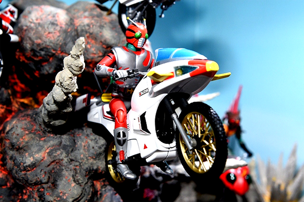 ที่สุดของความเร็วระดับส่งตรงจากองค์การนาซ่า ประเทสสหรัฐอเมริกา กับ “V-แมชชีน” ในร่างเจ๊ทโหมด มอเตอร์ไซด์ฮาร์ลีย์ เดวิดสันของ “คาเมนไรเดอร์ ซูเปอร์วัน” ที่เขาเคยขี่ควบข้ามประเทศมาจนถึงญี่ปุ่น ในช่วงตอนที่ 1 หลังจากที่ห้องวิจัยสร้างซูเปอร์วัน ถุกทำลายโดยพวกด๊อกม่า