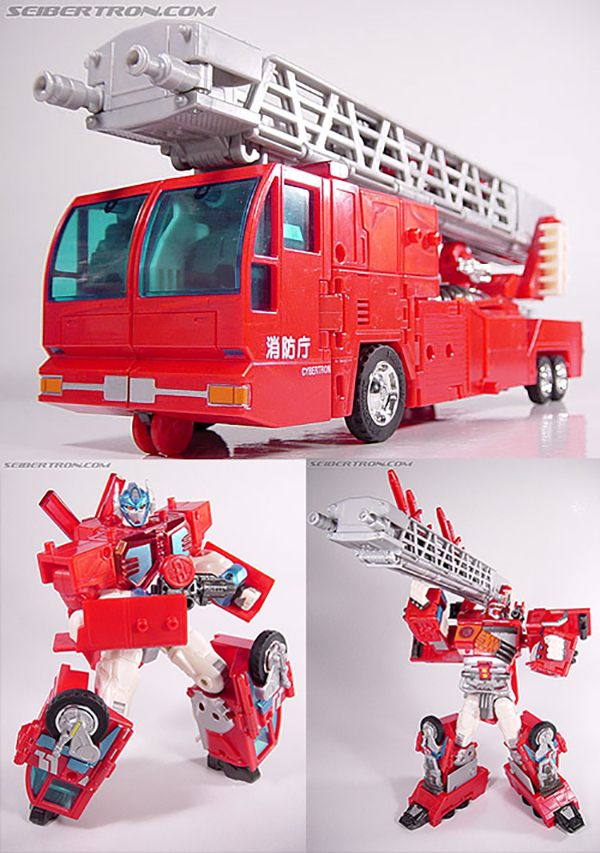 ไฟร์เยอร์ คอนวอย จากอนิเมญี่ปุ่นชุด “Car Robot : Transformers” (หรือ Transformers Robots In Disguise ฉบับฉายในอเมริกา) โดยจุดเด่นของออพติมัสในเวอร์ชั่นนี้ ก็คือร่างซูเปอร์โหมด ที่สามารถรวมร่างกับส่วนพ่วงท้ายที่เป็นรถดับเพลิงญี่ปุ่น นอกจากนี้ ยังสามารถรถรวมร่างกับ “อัลตร้า แมกนัส” จนกลายเป็นร่างสุดยอด “โอเมก้า ไพร์ม” ด้วยลูกเล่นที่มาในแนวสไตล์ญี่ปุ่นจ๋า ทำเอาแฟนๆทรานส์ฟอร์เมอร์สชื่นชอบไม่น้อยเลยทีเดียว แถมไลน์ Robots In Disguise มีร่างแปลกๆ ตัวพิเศษอีกเยอะแยะมากมาย เอาแค่ออพติมัสตัวเดียว ล่อไป 5-6 แบบแล้ว!