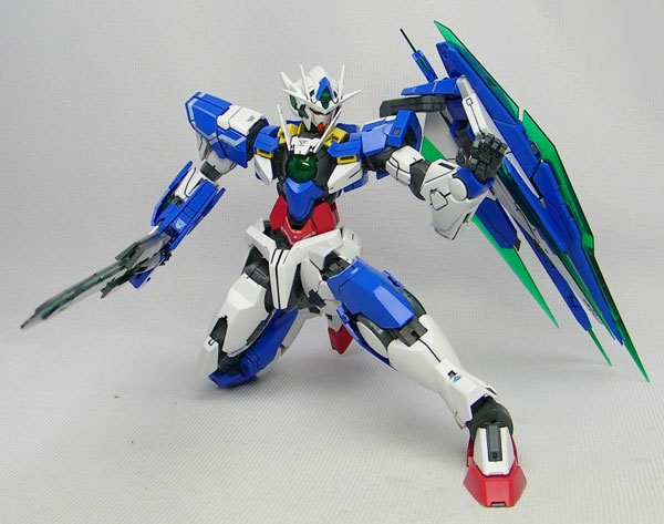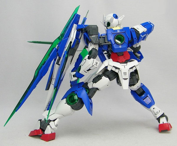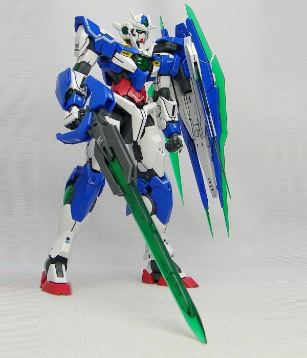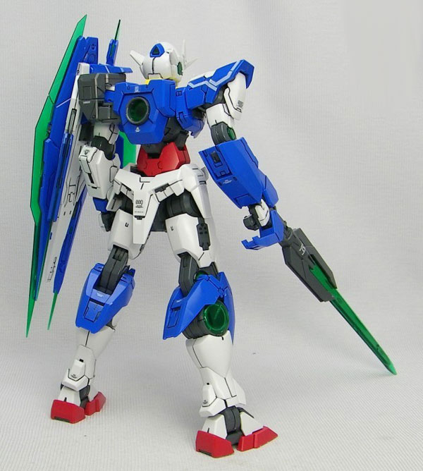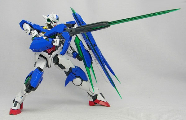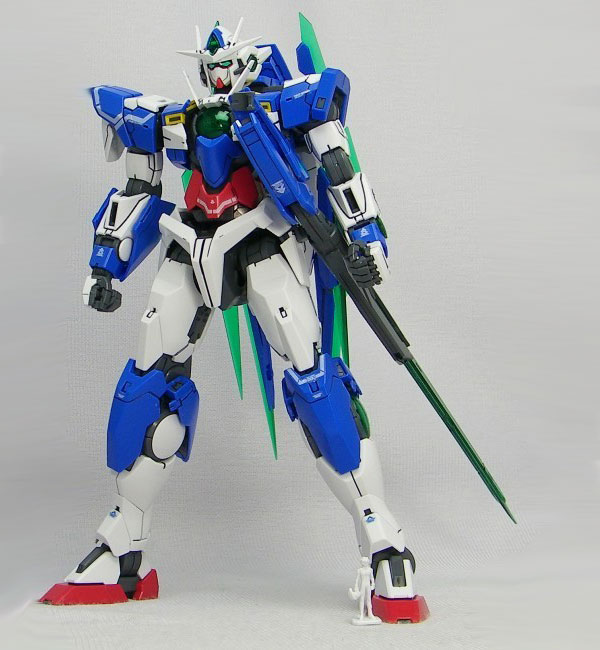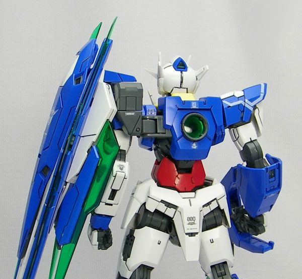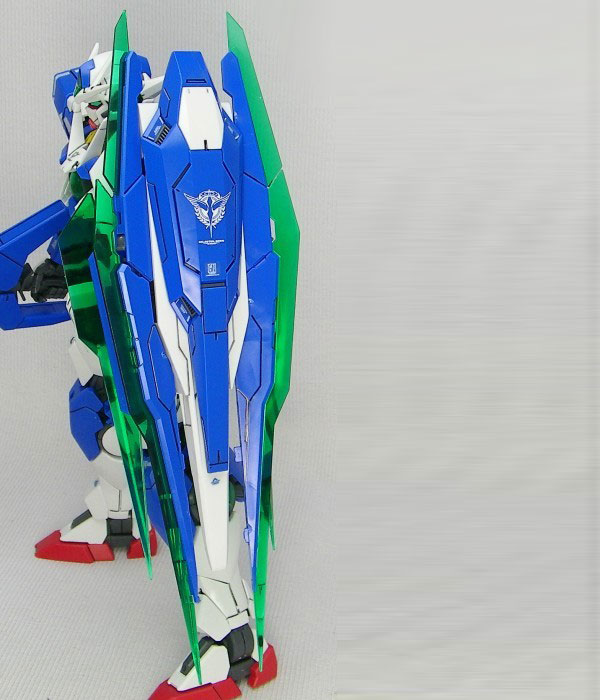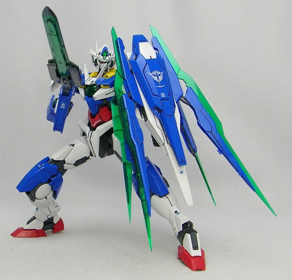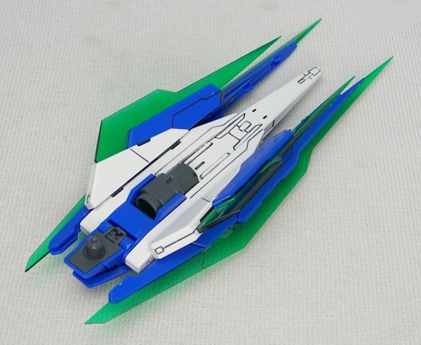 หุ่นประกอบ Gunpla ตัวนี้ เป็นกันดั้มรุ่นที่ห้า ซึ่งได้รับการออกแบบสำหรับให้อินโนเวเตอร์ที่แท้จริง คือ Setsuna F. Seiei ใช้งานโดยเฉพาะ และดับเบิลโอควอนตายังใช้เป็นโครงสร้างหลักแบบดับเบิลโอกันดั้ม โดยใช้อนุภาค GN ไดรฟ์ที่สร้างใหม่สองเตา เนื่องจากอนุภาค GN ไดรฟ์ทั้งสองนี้ ได้รับการออกแบบให้ทำงานร่วมกันผ่านระบบทวินไดรฟ์อยู่แล้ว จึงสามารถทำงานได้เต็มที่โดยไม่ต้องปรับแต่งอีก อนุภาค GN ไดรฟ์เตาแรกของควอนตาจะอยู่ที่ลำตัวเหมือนกันดั้มรุ่นที่สาม แต่เตาที่สองนั้นจะติดไว้กับโล่ GN shield ที่ไหล่ซ้าย ซึ่งโล่นี้มีแขนกลที่ทำให้ขยับตำแหน่งได้ ซึ่งเมื่อดับเบิลโอควอนตาจะใช้ทรานแซมเบิร์สท์นั้นก็จะเลื่อนให้อนุภาค GN ไดรฟ์ทั้งสองเชื่อมต่อกันโดยตรงนั่นเอง
