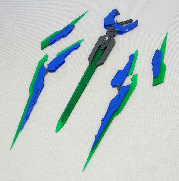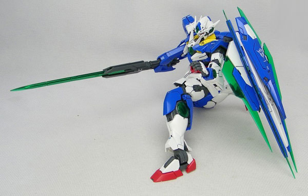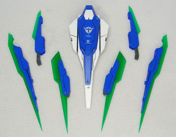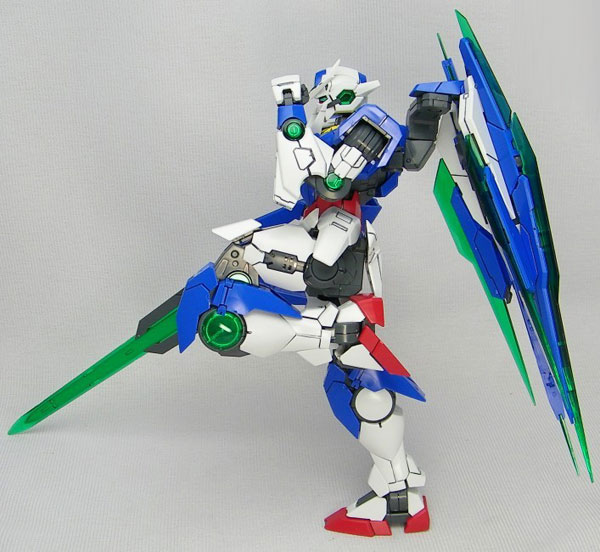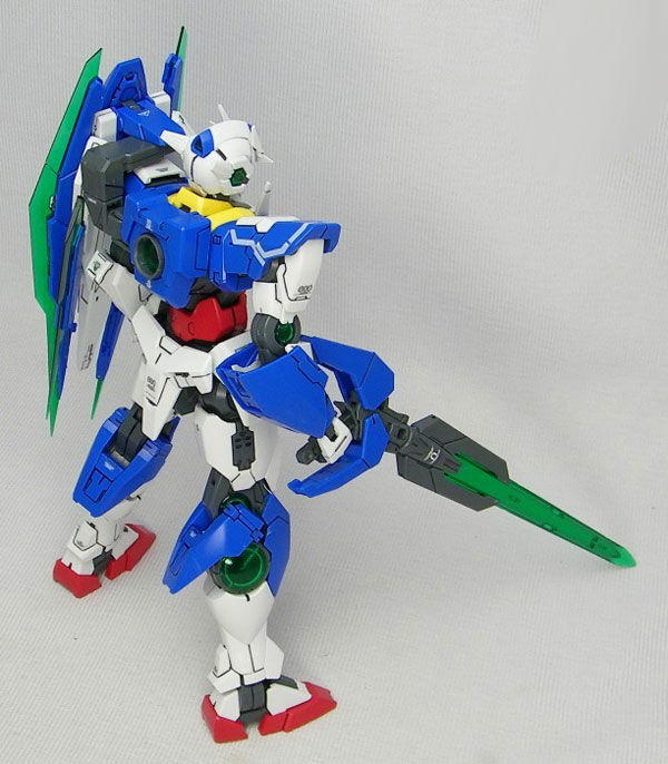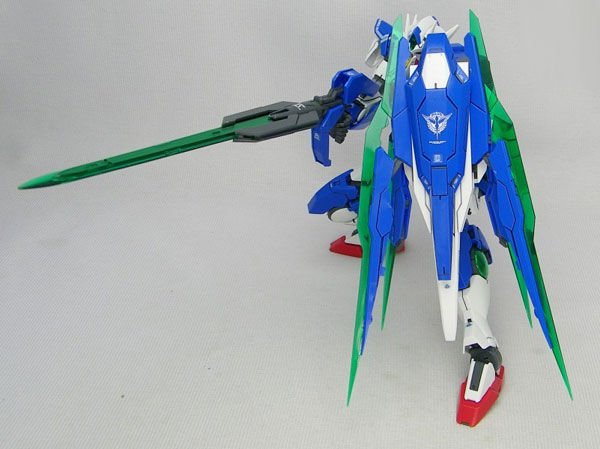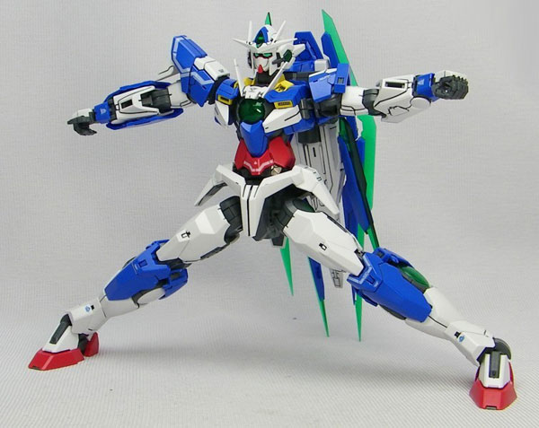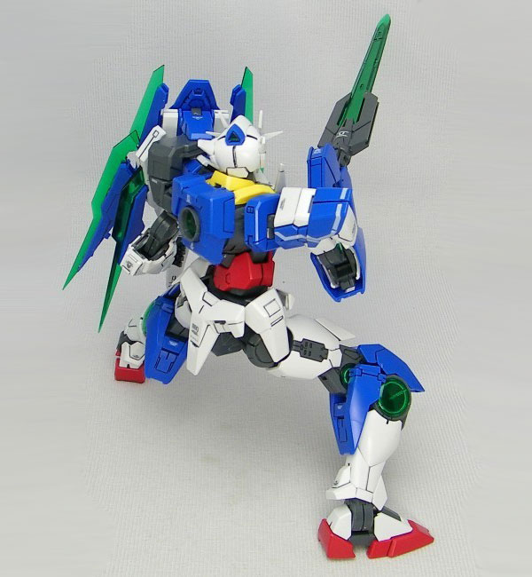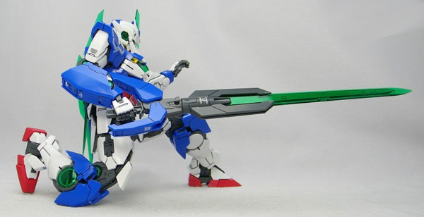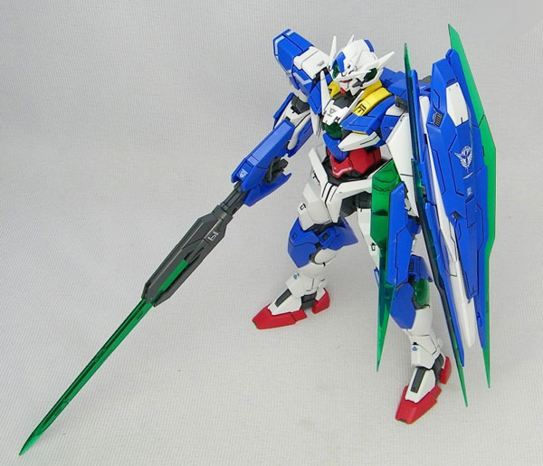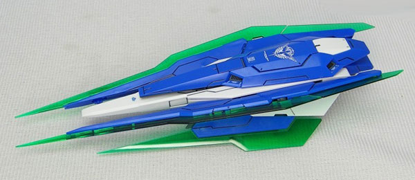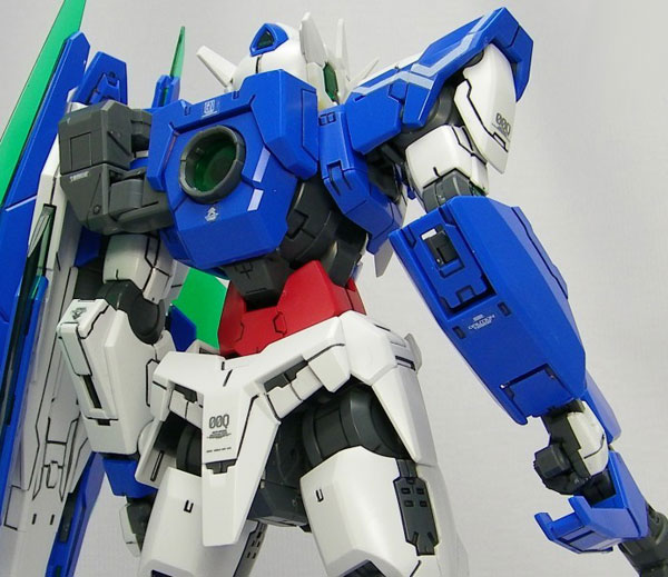 หุ่นประกอบ Gunpla ตัวนี้ เป็นกันดั้มรุ่นที่ห้า ซึ่งได้รับการออกแบบสำหรับให้อินโนเวเตอร์ที่แท้จริง คือ Setsuna F. Seiei ใช้งานโดยเฉพาะ และดับเบิลโอควอนตายังใช้เป็นโครงสร้างหลักแบบดับเบิลโอกันดั้ม โดยใช้อนุภาค GN ไดรฟ์ที่สร้างใหม่สองเตา เนื่องจากอนุภาค GN ไดรฟ์ทั้งสองนี้ ได้รับการออกแบบให้ทำงานร่วมกันผ่านระบบทวินไดรฟ์อยู่แล้ว จึงสามารถทำงานได้เต็มที่โดยไม่ต้องปรับแต่งอีก อนุภาค GN ไดรฟ์เตาแรกของควอนตาจะอยู่ที่ลำตัวเหมือนกันดั้มรุ่นที่สาม แต่เตาที่สองนั้นจะติดไว้กับโล่ GN shield ที่ไหล่ซ้าย ซึ่งโล่นี้มีแขนกลที่ทำให้ขยับตำแหน่งได้ ซึ่งเมื่อดับเบิลโอควอนตาจะใช้ทรานแซมเบิร์สท์นั้นก็จะเลื่อนให้อนุภาค GN ไดรฟ์ทั้งสองเชื่อมต่อกันโดยตรงนั่นเอง