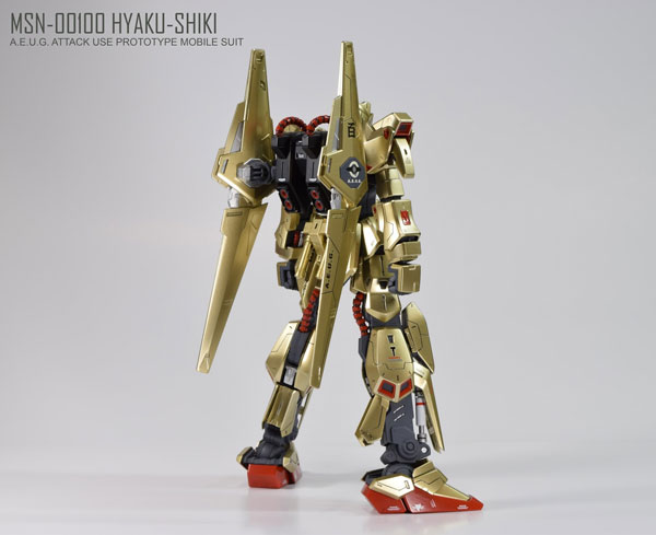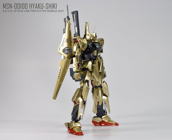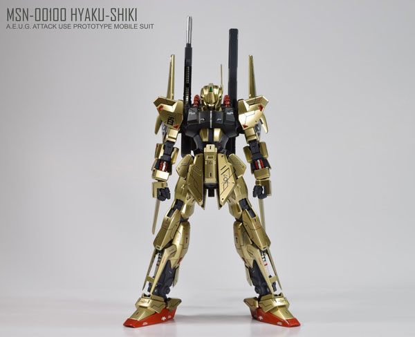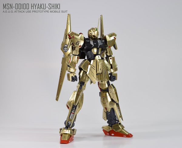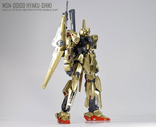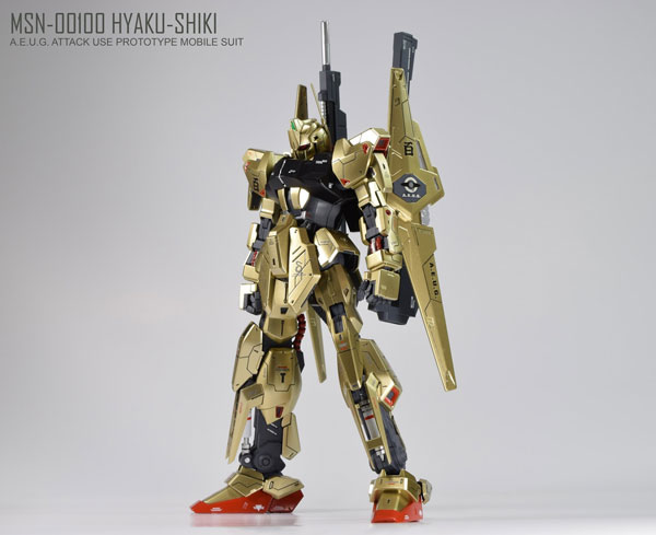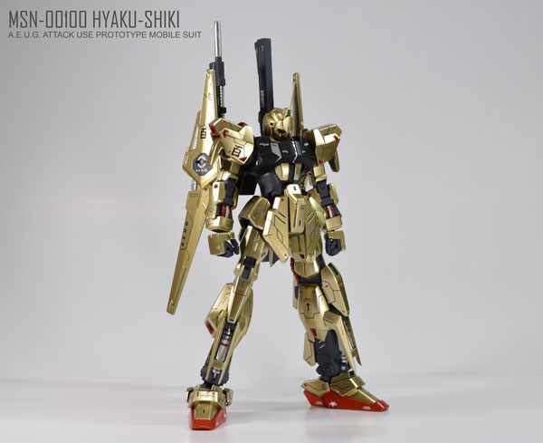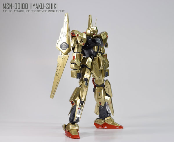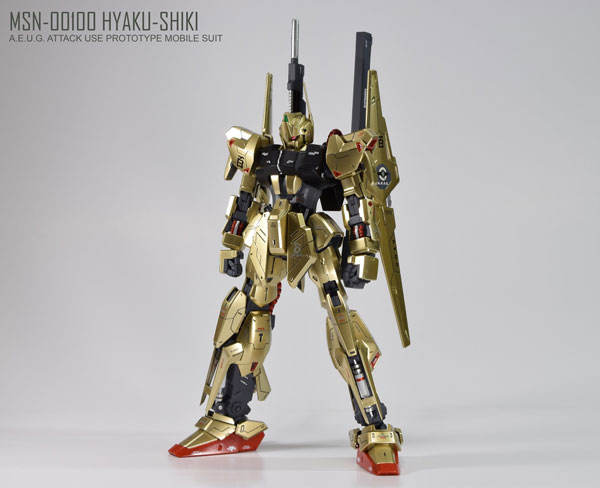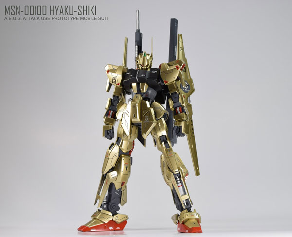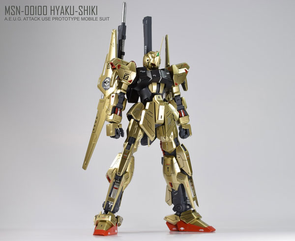 หุ่นรบรหัส MSN-00100 Type 100 Hyaku Shiki ตัวนี้ เป็น Delta Gundam ชุดเคลื่อนที่สร้างขึ้นโดย Anaheim ซึ่งเป็นส่วนหนึ่งของ Zeta Project ถูกออกแบบมาเป็น MSN-001 นักบินประจำหุ่นรบตัวนี้ คือ ควาโทร เบอจินา (Quattro Bajeena) หรือ ชาร์ อัสนาเบิ้ล (Char Aznable) ที่แฝงตัวเข้ามานั้นเอง หุ่นรบตัวนี้ได้มีการประยุกต์เคลือบความทนทานของเกราะให้เป็นสีทอง มีคุณสมบัติพิเศษในการสะท้อนลำแสงของ Beam ได้ และยังมีอุปกรณ์เสริม เช่น 60mm Vulcan Gun , Beam Saber , BR-M-87 Beam Rifle , AE/ZIM.C-BAZ-531 Clay Bazooka , Mega Bazooka Launcher , Beam-resistant Coating , Ballute System