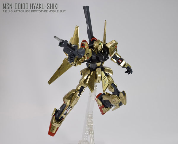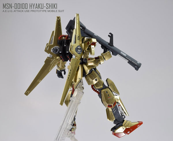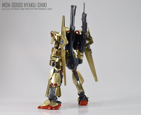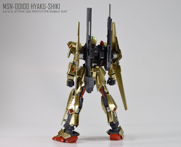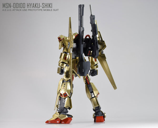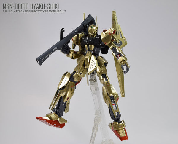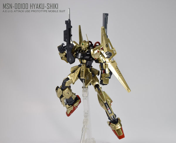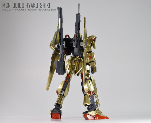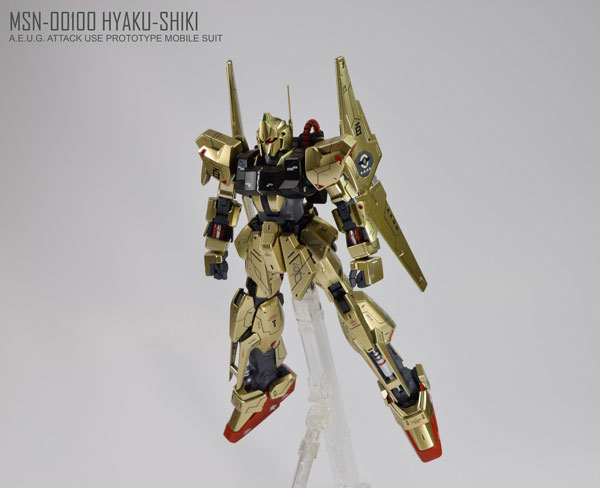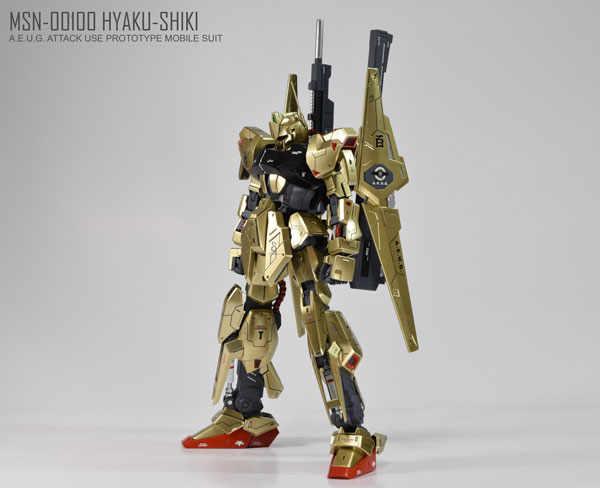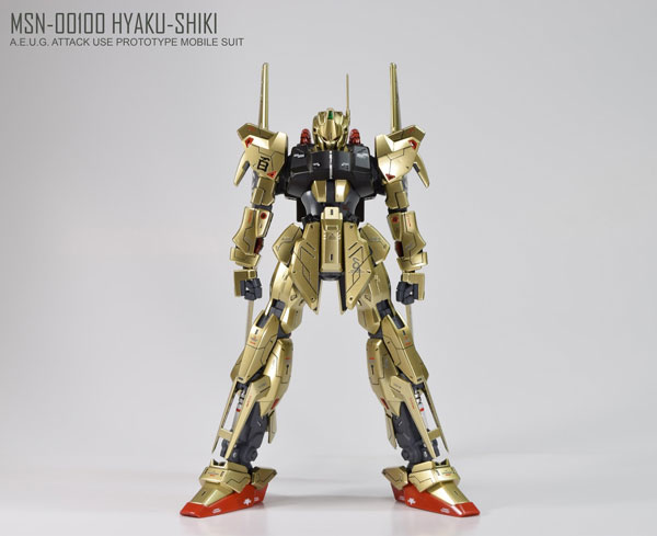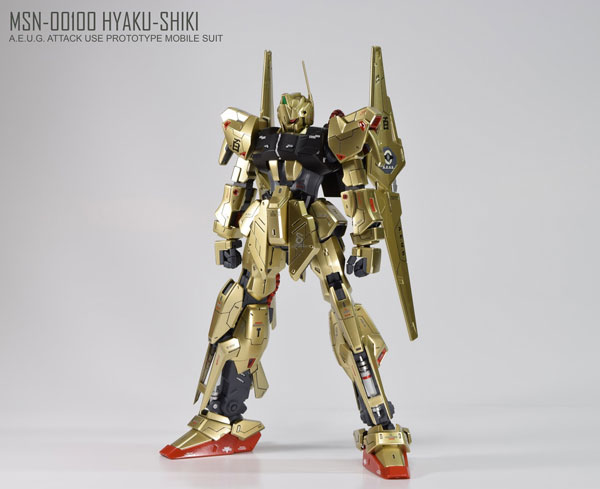 หุ่นรบรหัส MSN-00100 Type 100 Hyaku Shiki ตัวนี้ เป็น Delta Gundam ชุดเคลื่อนที่สร้างขึ้นโดย Anaheim ซึ่งเป็นส่วนหนึ่งของ Zeta Project ถูกออกแบบมาเป็น MSN-001 นักบินประจำหุ่นรบตัวนี้ คือ ควาโทร เบอจินา (Quattro Bajeena) หรือ ชาร์ อัสนาเบิ้ล (Char Aznable) ที่แฝงตัวเข้ามานั้นเอง หุ่นรบตัวนี้ได้มีการประยุกต์เคลือบความทนทานของเกราะให้เป็นสีทอง มีคุณสมบัติพิเศษในการสะท้อนลำแสงของ Beam ได้ และยังมีอุปกรณ์เสริม เช่น 60mm Vulcan Gun , Beam Saber , BR-M-87 Beam Rifle , AE/ZIM.C-BAZ-531 Clay Bazooka , Mega Bazooka Launcher , Beam-resistant Coating , Ballute System