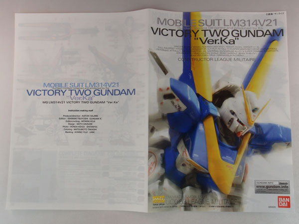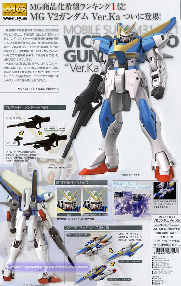 หุ่นประกอบ Gunpla ตัวนี้ เป็นกันดั้มที่อยู่ในภาค V Gundam (Victory Gundam) โมบิลสูทประจำตัวของ Uso Ewin (อุซโซ เอวิน) ที่ถูกพัฒนามาจาก V Gundam หรือที่เรียกกันสั้น ๆ ว่า V2 Gundam ซึ่งระบบ Minovsky Drive ของ V2 Gundam นั้น พัฒนาต่อมาจากระบบ Minovsky Flight ของ V Gundam โดยมีการปรับปรุงให้มีประสิทธิภาพพอ ๆ กับ Minovsky craft ของยานรบ และยังเป็นระบบขับเคลื่อนในตัวอีกด้วย V2 Gundam จึงได้ใช้ท่อขับดันเพียงเพื่อควบคุมทิศทางเท่านั้น