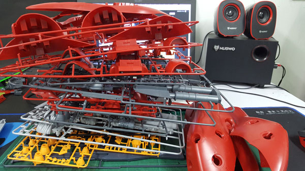 ส่วนที่เป็นเกราะหรือเฟรมด้านนอก จะมีชิ้นส่วนไม่ค่อยเยอะเท่าไรครับ แต่ชิ้นส่วนแต่ละชิ้นนี่ใหญ่ๆทั้งนั้น