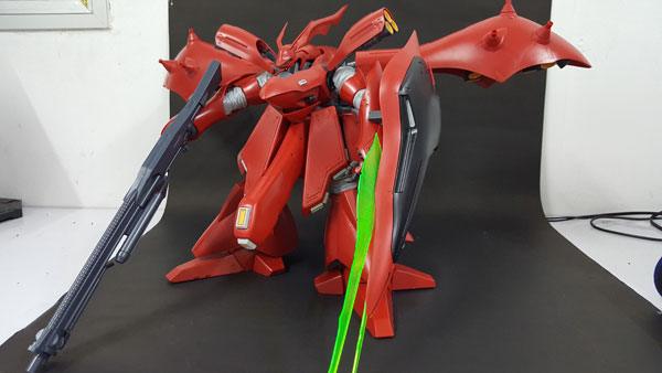 อาวุธของ Nightingale ตัวนี้มีน้อยมากครับ เพราะมีแค่บีมไรเฟิล กับ บีมเซเบอร์ติดที่โล่ ส่วนการประกอบก็ไม่ยอกเลยครับ ชิ้นส่วนมีน้อยมากๆ