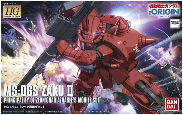 หุ่นรบโมบิลสูทของฝ่ายซีออน โดยการบังคับของ ชาร์ อัสนาเบิ้ล ผู้ได้รับฉายาว่า “ดาวหางสีแดง ” หลังจากชาร์ได้เคยใช้บาซูก้าถล่มเรือรบชั้น Magellan-Class จมไปพร้อมกัน 5 ลำ สำหรับรายละเอียดของ MS-06S นั้น มีความสูง 17.5 เมตร มีอุปกรณ์เสริม เช่น Shoulder Shield , ZMP-50D/120mm Machine Gun , M-120AC Machine Gun , H&L-SB25K/280mmA-P Zaku Bazooka , Heat Hawk Type5 , ZIM/M·T-K175C 175mm Recoilless Rifle , MarkVIII Sturm Faust , MIP-B6 Cracker Grenade , Twin 280mm Zaku Bazooka