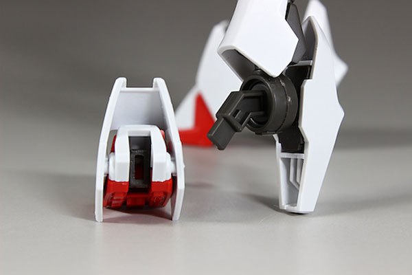 ด้วยตัวหุ่นที่มีแรงขับดันสูงเกินกว่าร่างกายนักบินจะรับได้ งานออกแบบของหุ่นสายกันดั้ม จึงเป็นการนำเอาห้องนักบิน แทรกระหว่ากลางเตาปฏิกรณ์เอฮับ 2 ลูก เพื่อลดแรงอัดกระแทกของตัวกันดั้มสู่นักบิน เพราะ “อนุภาคเอฮับ” (Ahab Particle) ที่ปล่อยออกมาจากเตาปฏิกรณ์เอฮับ จะช่วยรดภาระทางกายของนักบินได้ระดับหนึ่งนั่นเอง…