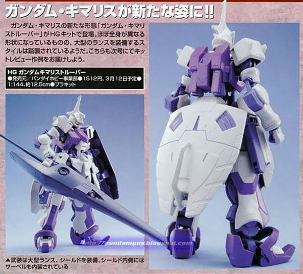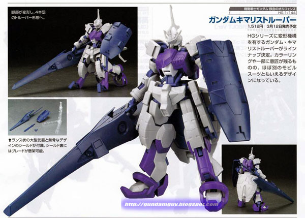 หุ่นประกอบ Gunpla ตัวนี้ เป็นหนึ่งในกันดั้ม 72 แบบที่เคยมีการผลิตและได้ถูกผลิตออกมาใช้ต่อต้านภัยพิบัติทางสงครามเมื่อประมาณ 300 ปีที่ผ่านมา หุ่นรบ Kimaris ตัวนี้ ได้ได้ยกเปลี่ยนชุดเกราะเดิมภายนอกสำหรับเสริมอาวุธหลัก อย่างหอก โล่ที่หลบใบมีดไว้ภายใน และยังเป็นหุ่นที่ถูกส่งออกไปปฏิบัติภารกิจและมีเปอร์เซ็นต์ประสบความสำเร็จสูง ด้วยประสิทธิภาพของตัวหุ่นที่มีเครื่องปฏิกรณ์เอฮับถึง 2 อันด้วยกัน โดยมีผู้ขับ คือ Gaelio Bauduin นั่นเอง