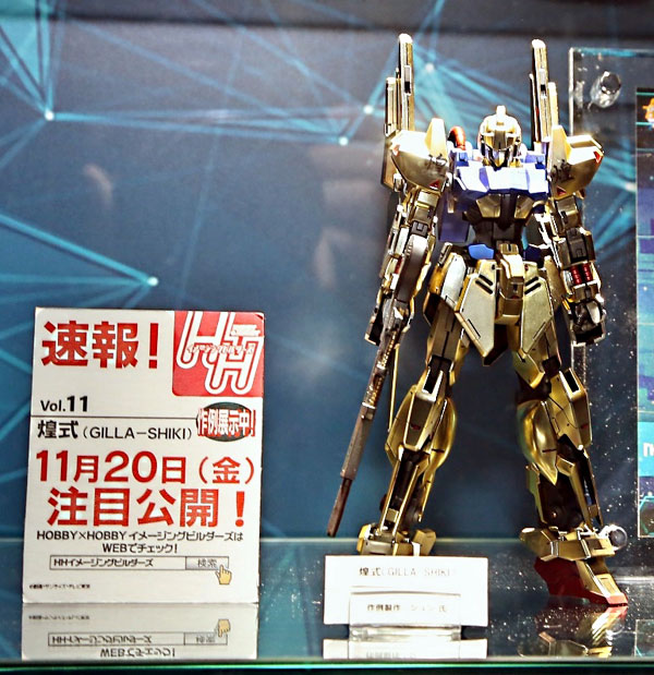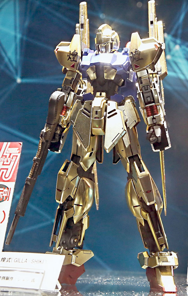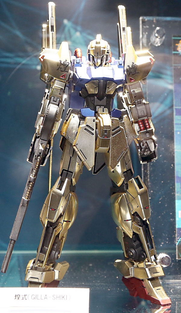 หุ่นประกอบ Gunpla ตัวนี้ เป็นหุ่นกันพลาของ ซุโด ชุนสึเกะ ในภาค บิลด์ไฟท์เตอร์ไทร์ ที่ออกมาภายหลังการแข่งรอบคัดตัว โดยซุโดได้กลับมาตกแต่งโมดิฟายกันพลาเองอีกครั้ง ก็ได้เอา Mega Shiki ที่พ่ายแพ้ไป มาแต่งเพิ่มเพื่อศึกษาเทคนิคใหม่ไปในตัว เมื่อโมดิฟายเพิ่มเติมสำเร็จก็ได้กันพลาที่มีชื่อเรียกว่า Gilla-shiki ออกมา โดยซุโดได้ลองแต่งให้กลับไปเป็นรูปแบบของ Hyakushiki โดยเอาปีกของ Mega Ride Launcher มาดัดแปลงเป็นแผงหลัง Wing Binders และทาสีทองบีมโคต