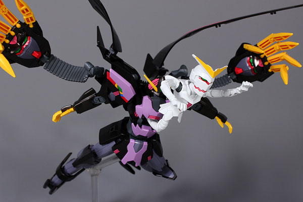 หุ่นประกอบ Gunpla ตัวนี้ เป็นหุ่นรบที่ถูกโมดิฟายออกมาให้มีเอกลักษณ์เฉพาะตัวที่ไม่เหมือนหุ่นรบทั่ว ๆ ไป โดยมีผู้ใช้ คือ Saga Adou (อันโด ซางะ) ใช้เป็นกันพลาตัวหลัก ซึ่งเป็นกันพลาที่มักจะซ่อนบางสิ่งบางอย่างไว้เบื้องหลังผ้าคลุมสีแดง โดยมีแขนยักษ์ที่สามารถขยายได้ เป็นอาวุธใช้โจมตีระยะประชิดได้เป็นอย่างดี และยังมีอุปกรณ์เสริม เช่น Shot The End , Fist The End (DE Fangs / Dead End Finger) , Beam Claw