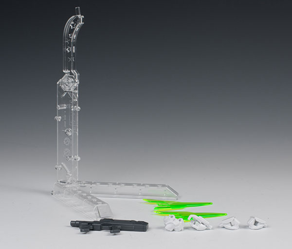 ในชุด มีฐานใสเฉพาะมาให้ แต่นาเสียดายที่เป็นฐานแบบตายตัว ปรับองศาได้ไม่มาก แต่มีรูเสียบอาวุธ มือ ชิ้นส่วนเหลือ ที่ใช้กับตัวฟุมินะตัวนี้ไม่ได้ซะงั้น (เพื่อ!?)