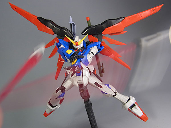 หุ่นประกอบ Gunpla ตัวนี้ เป็นหุ่นรบในซีรี่ส์ Gundam Seed Destiny ออกแบบโดย คุนิโอะ โอคาวาระ หุ่นตัวนี้ เป็นต้นแบบของซาฟท์ ซึ่งกิลเบิร์ต ดูแลนดัลได้ทำการพัฒนาเพื่อให้ ชิน อาสึกะ เป็นผู้ขับ โดยเฉพาะระบบของ Destiny Gundam ถูกทดสอบด้วย ZGMF-X56S Impulse Gundam เพื่อแก้ไขปัญหาที่มีระยะเวลาในการออกบินที่สั้นเกินไปจึงใช้เตาปฏิกรณ์ไฮเปอร์ดิวเทอเรียนเป็นแหล่งพลังงานนั่นเอง