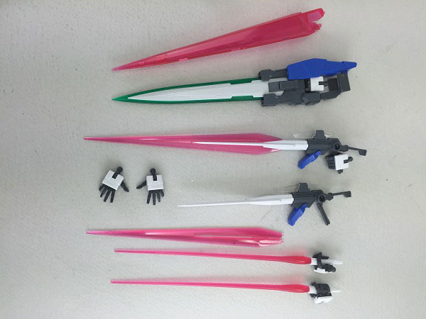 อาวุธที่ดับเบิ้ลโอใช้งานจะเป็นการแปลงพลังงานจากเตาปฏิกรณ์ GN Drive มาแปลงเป็นพลังโจมตีซึ่งมีอาวุธหลากหลายชนิดให้เลือกใช้งานตามสถานการณ์ เช่น GN Beam. Machine Gun. GN Beam Saber,GN Micro Missile, GN Shield, GN Sword II, GN Sword III, GN Vulcan