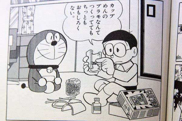 จริงๆแล้วโมเดลบะหมี่ถ้วยอันนี้ไม่ใช่ของใหม่ เพราะครั้งหนึ่งในการ์ตูนแมวสีฟ้าโดเรม่อนเคยพูดถึงโมเดลอันนี้ในตอน “คนทีมาหยุดตัวฉันคือโนบิตะ” ที่ตอนจบโนบิตะต้องมาประกอบโมเดลบะหมี่ถ้วยแทนหุ่นยนต์เรียกได้ว่า อ.ฟูจิโกะ เอฟ.ฟูจิโอะ ได้ทำนายอนาคตว่าจะมีของแบบนี้เกิดขึ้นแน่นอน (ฮ่า!)