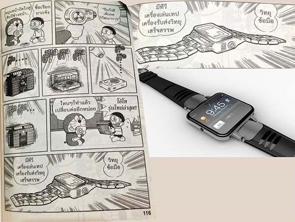 ในตอนหนึ่งของโดเรม่อน ที่เจ้าแมวสีฟ้าได้ลองใช้ของวิเศษที่ชื่อ ปืนรังสีเพิ่มลดวิวัฒนาการ ยิงใส่วิทยุให้โนบิตะดูจนพัฒนาเป็นวิทยุข้อมือซึ่งทุกวันนี้เราอาจจะเห็นของแบบนี้คือพวก Smart Watch นั่นเอง ที่สามารถฟังเพลงดูเวลาทำได้ทุกอย่างที่ต้องการ (ฮ่า)