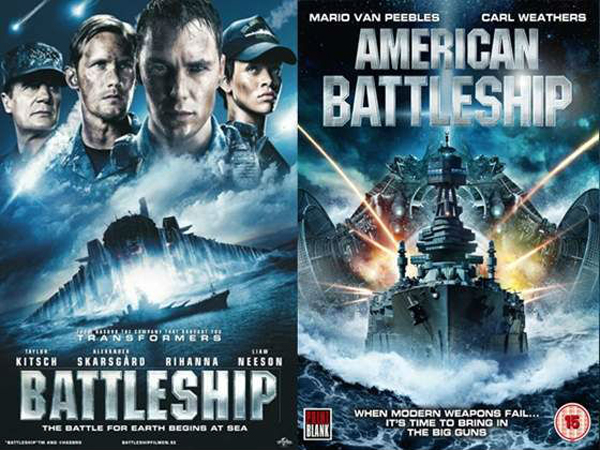 3. Battleship สมรภูมิเรือรบพิฆาตเอเลี่ยนเป็นหนังที่มีเรื่องราวเอาจริงกับพวกที่ทำหนังเลียนแบบ เพราะบริษัท“Asylum” ที่สร้างหนังเรื่อง American Battleship โดนเจ้าของ LCหนังใหญ่ฟ้องร้อง แต่ Asylum ก็ล้มคดีโดยการเปลี่ยนชื่อหนังแทน…