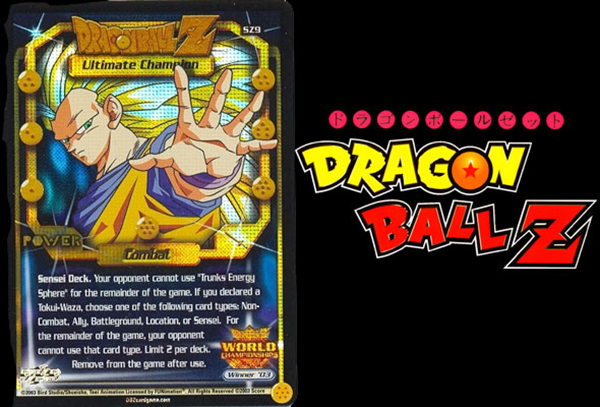 สุดยอดของสะสมดราก้อนบอล ที่สามารถตีเป็นเงินได้เป็นเพียงการ์ดใบเล็กๆใบเดียวเท่านั้น แต่การ์ดใบนี้ไม่ธรรมดา เพราะเป็นการ์ดของ “แชมป์โลก” DBZ World Championship tournament 2003 และคุณสมบัติของการ์ดก็โหดใช่ย่อย เพราะผู้ที่ครอบครอง สามารถสั่งแบนการ์ด 1 รูปแบบที่มีในสำรับคู่แข่งทั้งหมด ทุกใบ (อันนี้ไม่เข้าใจกฎนะ แต่แค่สามารถเลือกแบนการ์ดทุกใบที่เข้าข่ายได้ก็คงต้องถือว่าโคตรโกงเลยจริงๆ)