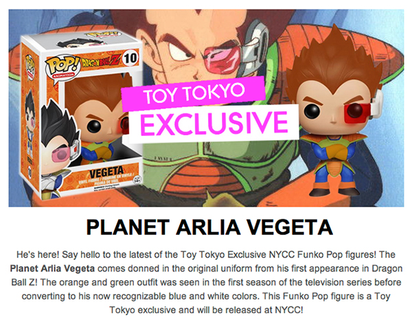 14.FUNKO Pop! DBZ Planet Arlia Vegeta NYCC Toy Tokyo Exclusive