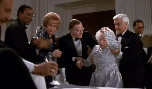 ในฉากเดียวกันที่พระเอกอยากสร้างความประทับใจให้กับหญิงสาวตรงหน้า ก่อนจะถอยเก้าอี้จนทำให้ภริยาประธานาธิบดีล้มลงโดยไม่ได้ตั้งใจจนเจ้าหน้าที่อารักขาตะโกนว่า “Gray lady down.” ซึ่งนอกจากจะหมายถึงภริยาฯแล้ว ยังอ้างอิงถึงภาพยนตร์ในชื่อเดียวกันปี 1978 ว่าด้วยเรื่องราวของเรือดำน้ำ
