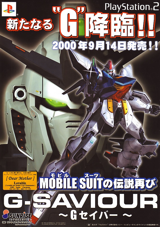 เมื่อเข้าสู่ยุคของ Playstation 2 ในปี ค.ศ. 2000 ก็ได้มีการวางขายเกม G-Savior เพื่อเป็นการโปรโมทหนังกันดั้มภาคคนแสดงอย่าง “G-Savior” อันเลื่องชื่อ ( ชื่อเสียรึเปล่านะ .. ) โดยเนื้อเรื่องในเกมนั้นจะเป็นเหตุการณ์หลังจากเหตุการณ์ในหนังครับผม เป็นเกมแนว Thrid Person Shooting Gundam เกมแรกๆเลย