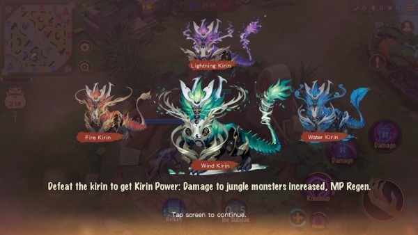 นอกจากครีปป่าทั่วไปให้สายฟาร์มหาเงินแล้ว ยังมี “กิเลน” บัฟแดง / ฟ้า / เขียว ที่มีคุณสมบัติตีครีปป่าแรงขึ้นแล้ว ยังพ่วงสถานะต่างๆ มี 4 ตัวในแผนที่ทั้งสองฝั่ง