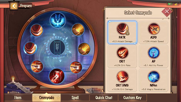 ตัวเกมจะมีระบบรูนคล้ายๆกันกับเกม MOBA แต่เกมนี้จะเรียกว่าระบบ“วิถีองเมียวจิ” หรือ “องเมียวจิโด” ซึ่งการเซตรูนในเกมทั่วๆไป จะเน้นหนักไปทิศทางใดทิศทางหนึ่ง ใส่ซ้ำๆเพื่อให้ประสิทธิภาพดีที่สุด แต่เกมนี้ จะเป็นการเปิดให้ผู้เล่นได้ใส่รูนซ้ำได้ไม่เกินสองช่อง และจะมี “3 ช่องพิเศษแถวกลาง” ที่ให้ผลสถานะต่างๆ หรือคุณสมบัติพิเศษแตกต่างจากการเพิ่มสถานะทั่วไปอีกด้วย แถมตัวละครแต่ละสายจะเซตรูนแยกกันเหมือนเกมทั่วๆไป แต่ 3 ช่องพิเศษดังกล่าวจะมีความสามารถไปตามสายที่เหมาะสม ถ้ามือใหม่ไม่รู้จะจัดยังไง ตัวเกมมีเซตอัตโนมัตสำเร็จรูปติดมาให้ และไม่สามารถปรับแก้ได้ 3 ชุด (ไฟเตอร์ / เมจ / ซัพ)
