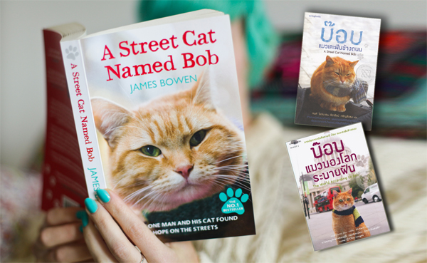 แล้วก็ถูกสร้างเป็นหนังไปอีกเรื่อง… สำหรับหนังสือที่เขียนขึ้นจากเรื่องราวความน่ารักที่เกิดขึ้นจริงของ “บ๊อบ” เจ้าเหมียวที่เปลี่ยนชายติดยาคนหนึ่งสู่ชีวิตใหม่ ซึ่งก็คือผู้เขียน James Bowen (เจมส์ โบเวน) เจ้าของผลงานเรื่องนี้ จนได้เสียงตอบรับอย่างดี ดูได้จากยอดการตีพิมพ์ในอังกฤษกว่า 1 ล้านเล่ม นี่ยังไม่นับรวมถึงการถูกนำไปแปลอีก 30 ภาษา ทั่วโลก และหนึ่งในนั้นก็คือภาษาไทย ซึ่งปัจจุบันก็คลอดผลงานมาแล้ว 2 เล่มด้วยกัน ในชื่อ A Street Cat Named Bob (บ๊อบ แมวเตะฝันข้างถนน) และ The World According to Bob (บ๊อบ แมวมองโลกระบายฝัน) ให้เหล่าทาสแมวที่เคารพได้ติดตามกัน