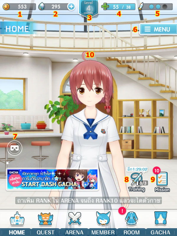 9. Mission ไอคอนสำหรับใช้ดูความคืบหน้าของภารกิจที่กำลังดำเนินการอยู่ สามารถกดยืนยันเพื่อรับของรางวัลเมื่อสำเร็จ