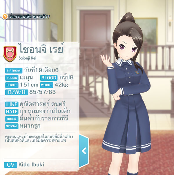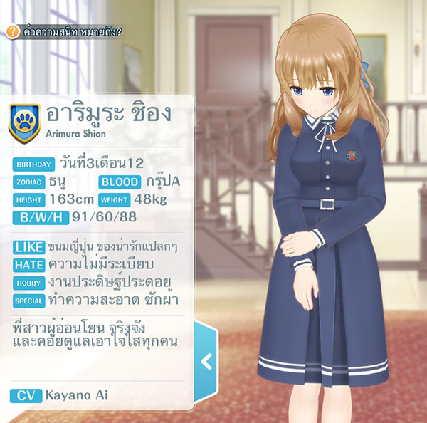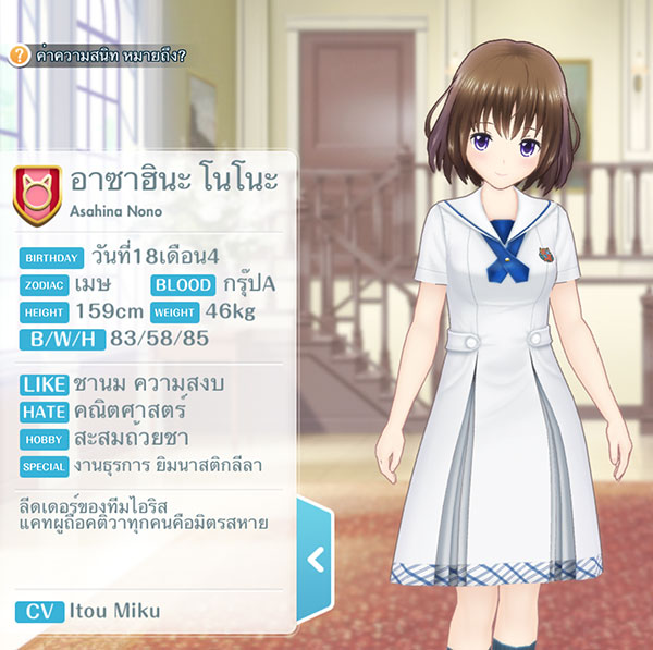 8.Training สำหรับใช้เข้าโหมดฝึกฝนตัวละคร เพื่อเพิ่มระดับค่าความสันพันธ์