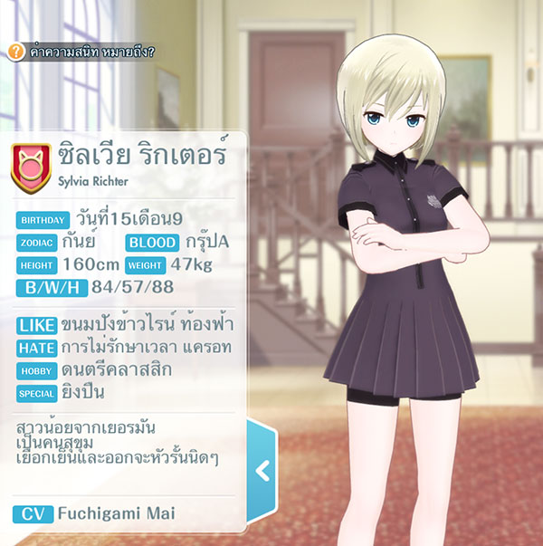 ช่องเก็บตัวละคร อินเตอร์เฟสใช้สำหรับดูค่าสเตตัสต่างๆ ของเหล่าสาวๆ ที่มีทั้งหมด สามารถทำการ Power Up และ Limit Break ได้ในหน้าจอนี้