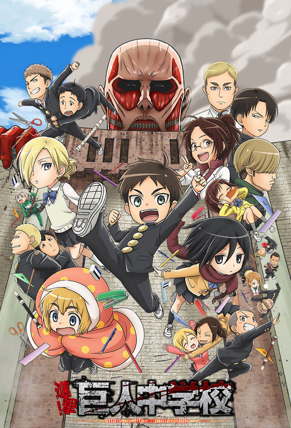 หลังจากเจอ ดราม่า แอคชั่น สุดระทึกกันมาชุดใหญ่ กับ Attack on Titan ทั้งในรูปแบบมังงะ, อนิเมชั่น และภาพยนตร์ฉบับคนแสดงกันมาครบแล้ว ก็มาถึงคิวเวอร์ชั่นเบาสมองของการ์ตูนเรื่องดังเรื่องนี้กันบ้าง กับ Shingeki! Kyojin Chuugakkou โรงเรียนมัธยมไททัน ที่รับรองความฮา ชนิดที่ไม่ต้องคาดหวังว่าจะมีสาระแทรกซึมกันมาให้ขบคิดรกสมองกันเลยทีเดียว โดยแม้จะไม่ได้ดัดแปลงมาจากฉบับมังงะโดยผู้แต่งคนเดียวกัน แต่ในส่วนของอนิเมชั่นก็ได้ทีมสร้างชุดเดิมจาก Production I.G โดยผู้กำกับ Yoshihide Ibata จาก Attack on Titan เวอร์ชั่นเดิม มาสร้างสรรค์ความสนุกใหม่ให้แฟนไททันหัวเราะกันต่อในฉบับมินินี้กัน