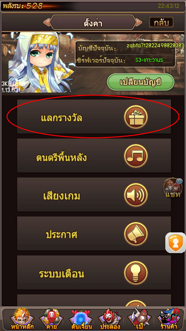 3. เติมโค๊ดโดยเข้าไปในเกมส์ แล้วไปที่ ระบบ > แลก CDKey แล้วกรอกโค้ดที่ได้รับ