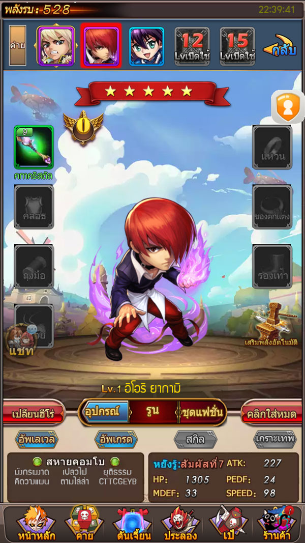 ค่าย : เอาไว้สำหรับจัดทัพ ทีมต่อสู้ของเรา สูงสุดจะมีได้ 5 ตัวละคร และในนี้ยังเอาไว้สวมใส่อุปกรณ์เสื้อผ้าอาวุธให้ตัวละครเราเก่งขึ้นได้ด้วย
