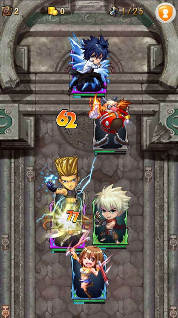เข้าสู่ดันเจี้ยนเลือกด่านที่ต้องการเล่น พอเข้าไปแล้วระบบจะทำการต่อสู้ให้เองเสร็จสรรพ เรามีหน้าดูการต่อสู้มันๆรอสรุปผลแพ้ชนะในตอนท้าย เก็บไอเทมที่ได้ในฉากนั้นไปอัพเกรดตัวละครในทีมให้แข็งเกร่งขึ้นเพื่อลุยต่อในฉากต่อๆไป
