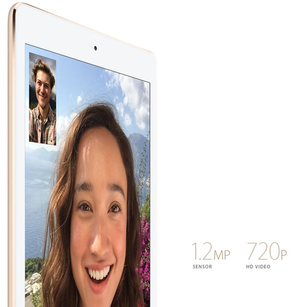 iPad Air 2 มาพร้อมกับกล้อง iSight ตัวใหม่ ที่ความละเอียด 8 ล้านพิกเซล มีออโต้โฟกัส ชุดเลนส์ 5 ชิ้น รูรับแสงกว้าง f/2.4 เก็บภาพที่ความละเอียด 3264 x 2448 พิกเซล ในเรื่องการจับโฟกัส Apple ทำได้ดีมาทุกรุ่นตั้งแต่ iPhone แล้ว iPad Air 2 ตัวนี้ถ่ายรูปได้ง่าย เพียงแค่เปิดกล้องระบบออโต้โฟกัสก็จะทำการจับโฟกัสให้ทันที หรือหากไม่พอใจก็สามารถแตะเพื่อทำการโฟกัสตามจุดที่ต้องการได้ และสามารถปรับ f-stop ได้ 4 ระดับโดยการแตะที่ไอคอนรูปแสงสว่าง จากนั้นเลื่อนขึ้นหรือเลื่อนลงเพื่อปรับ และยังมี HDR มาให้ใช้งานสำหรับถ่ายในที่ที่แสงน้อย , Panorama ความละเอียดสูง 43 ล้านพิกเซล , ถ่ายภาพต่อเนื่องได้ถึง 10 ภาพต่อวินาที , ตั้งเวลาถ่ายภาพ สำหรับการบันทึกวีดีโอจะบันทึกความละเอียด Full HD 1080p มีโหมด Slo-Mo ถ่ายวีดีโอสโลว์โมชั่นที่ 120fps ด้วยความละเอียด 720p สามารถเลือกช่วงสโลว์โมชั่นภายหลังได้ และยังมีโหมด Time-Lapse เร่งความเร็วให้กับวีดีโอ แค่เลือกโหมดนี้และบันทึกวีดีโอระบบก็จะทำวีดีโอเร่งความเร็วให้เอง iPad Air 2 มีกล้องหน้าความละเอียด 1.2 ล้านพิกเซล บันทึกวีดีโอที่ระดับ HD 720p พร้อมไมโครโฟนคู่ ช่วยในการลดเสียงรบกวนรอบข้าง และจะสลับไมค์อัตโนมัติเมื่อเปลี่ยนสลับกล้องหลังและกล้องหน้าได้อีกด้วย