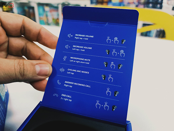 ส่วนการควบคุมหูฟัง จะเป็นการกดปุ่มที่ข้างๆหูฟังโดยตรง ไม่ใช่ระบบสัมผัส ตามคีย์คำสั่งที่ตั้งค่าจากโรงงาน มีดังนี้