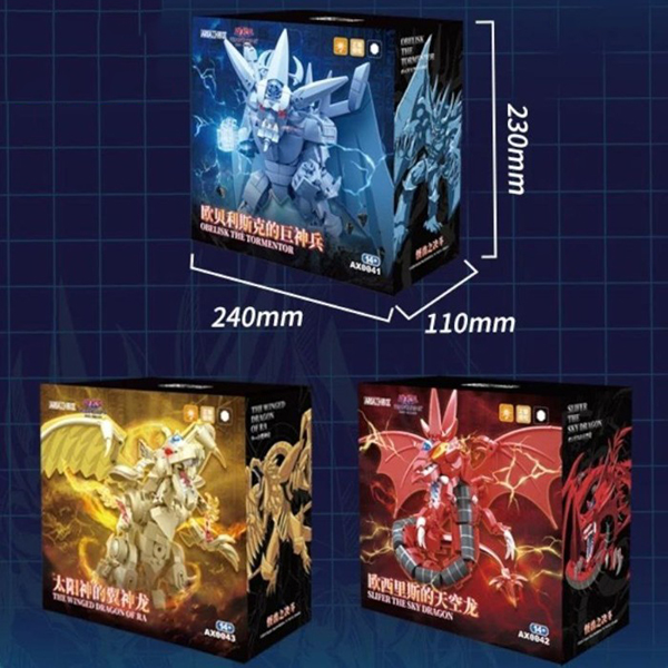 จากคาแรคเตอร์ในการ์ตูนดังรายสัปดาห์ยุค 90s ยูกิโอ เกมกล คนอัจฉริยะ บัดนี้ เหล่าการ์ดเทพ ที่อยู่จุดสูงสุดของการ์ดเกมในภาคแรก ได้ออกมาเป็นของเล่นของสะสมแล้ว กับ เทพโอชิริส เทพโอเบลิสก์ และ เทพราห์ มาเป็นตัวบล๊อกต่อ สวยงามน่าสะสม
