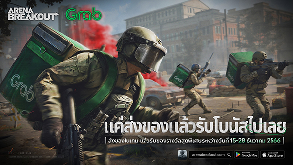 นอกจากแคมเปญสุดพิเศษให้ได้มันส์กันแล้ว ทางเกม Arena Breakout ยังร่วมมือกับ Grab ซูเปอร์แอปฯ ระดับโลก ครีเอตกิจกรรมพิเศษขึ้นมา พร้อมแจกรางวัลโบนัสพิเศษส่งท้ายปี