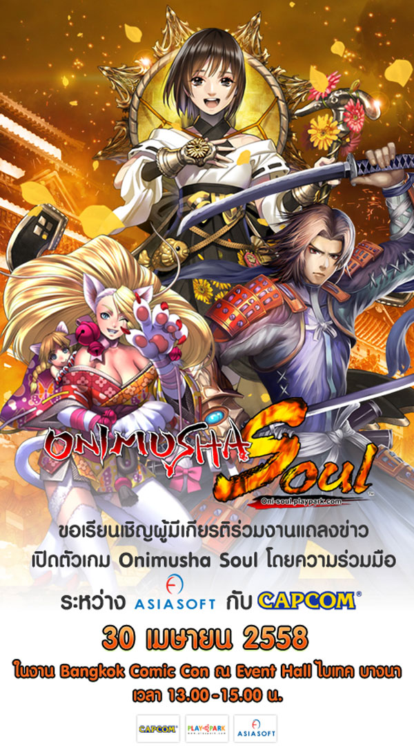 เมื่อวันที่ 30 เมษายน 2558 มีงาน Bangkok Comic Con 2015 ณ ไบเทคบางนา บริษัทยักษ์ใหญ่อย่าง Asiasoft ได้จับมือกับ CAPCOM ผู้พัฒนาเกมยักษ์ใหญ่จากญี่ปุ่น พร้อมให้บริการเกม Onimusha Soul เป็นเกมการ์ดแนววางแผน (Strategy Card Game) ในรูปแบบของ Web Base แบบ Cross Platform ที่สามารถเล่นผ่าน Browser และ Mobile ได้ เกมเมอร์ชาวไทยเตรียมมันส์ในสมรภูมิเกมการ์ดได้กำหนดเปิดทดสอบ CBT 12-14 พฤษภาคม และเปิดให้บริการอย่างเป็นทางการ 21 พฤษภาคมนี้