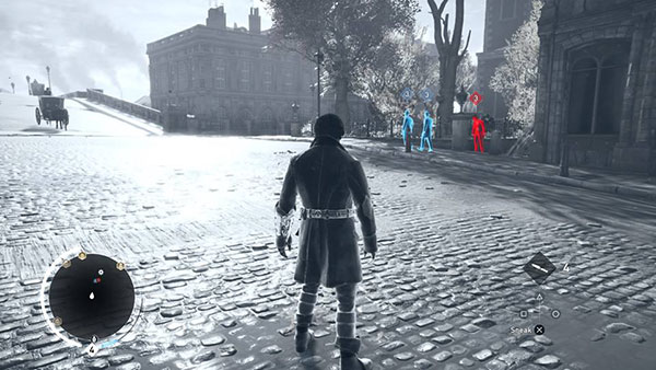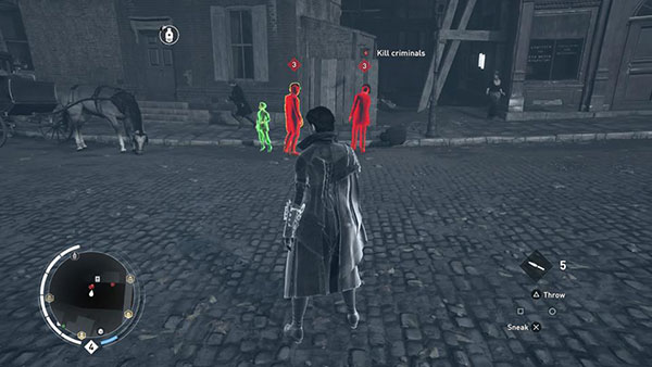 Eagle Vision ดวงตาของแอสซาซินที่แยกแยะเป้าหมายถ้าสีแดงก็ฆ่าซะ ถ้าสีเขียวเรียกให้ช่วยได้