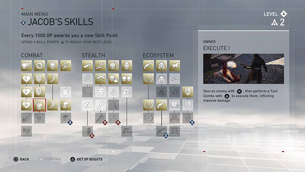 สกิลมีให้เลือกอัพหลักๆ 3 สายคือ ทักษะการต่อสู้ ทักษะโจรย่องเบา และทักษะทั่วไป