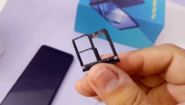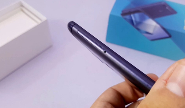 ด้านขวาของตัวเครื่องจะมีช่องใส่ซิมเล็ก และ SD Card แต่ต้องใช้เข็มจิ้มถาดซิมที่มาในตัวเครื่อง