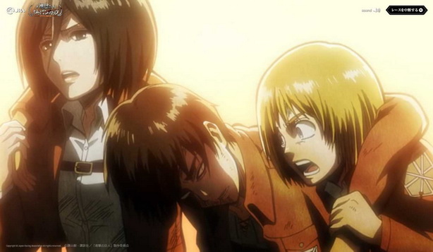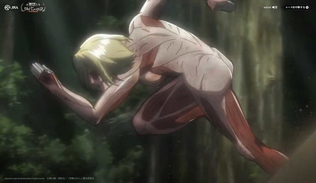ฟังแล้วคิดดว่าหลายคนคงตกใจว่าเข้าใจอะไรผิดไปหรือไม่? ที่จริงแล้วนี่ก็คือเกม Attack on Titan แต่เป็นการฟีเจอร์ริ่งระหว่างอนิเมชั่นเรื่องนี้กับสมาคมแข่งม้าของญี่ปุ่น (JRA) ที่ร่วมกันสร้างเกมนี้ขึ้นมาให้เล่นบนเว็บไซต์เพื่อเป็นการโปรโมทนั่นเอง แต่ก็น่าให้คิดเหมือนกันว่าการ์ตูนเรื่อง Attack on Titan สามารถปรับให้เข้ากับสภาพแวดล้อมได้หลายรูปแบบมากมาย บางครั้งก็เป็นการ์ตูนดราม่า การ์ตูนตลก และล่าสุดก็เป็นเกมขี่ม้าแข่งกับเหล่าไททันไปซะอย่างนั้น!! แต่ก็ยังยืนยันเช่นเดิมว่า “ไททันไม่ใช่การ์ตูนตลก”